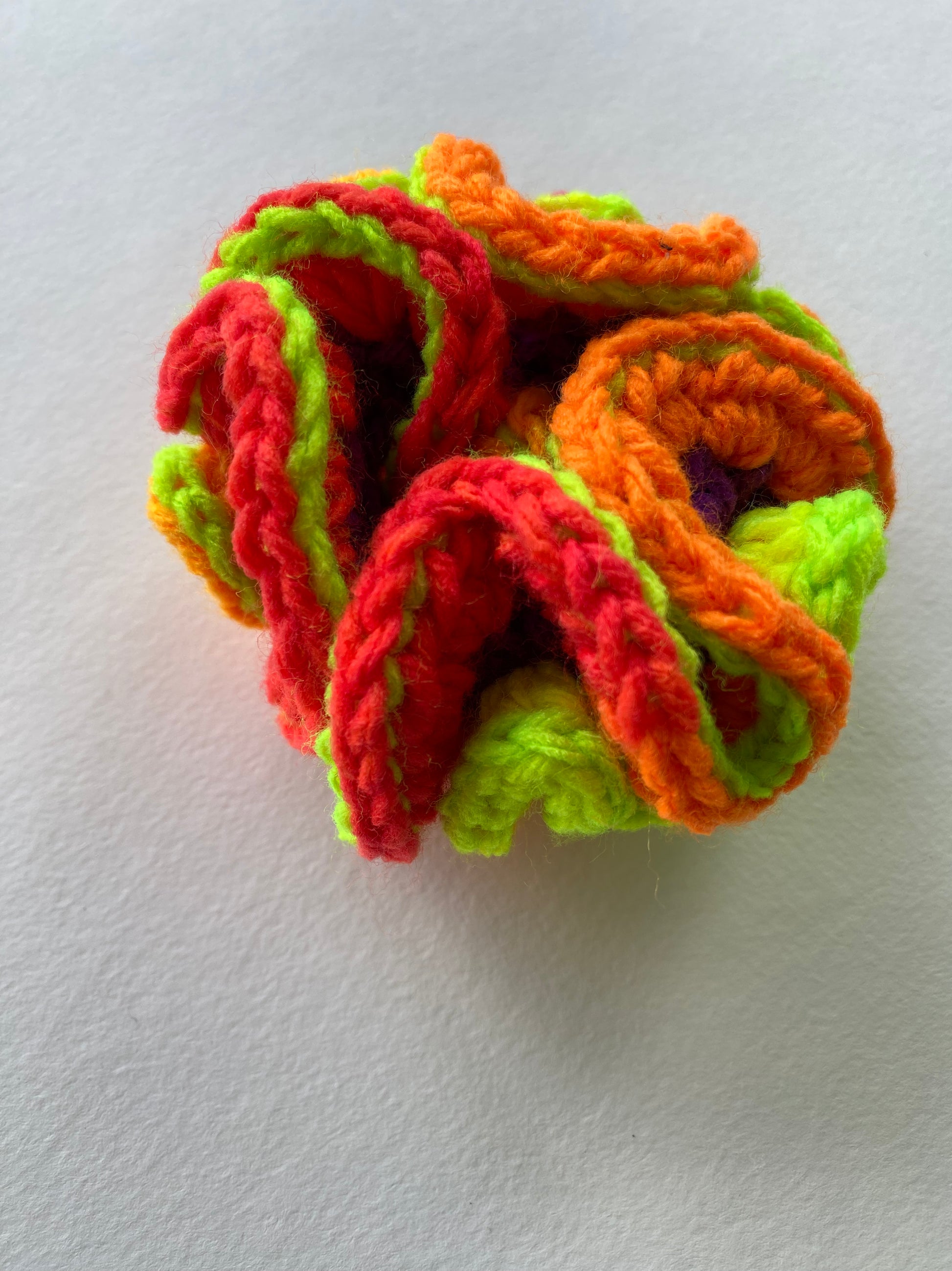 Crochet möbius strip fidget, super fun to squish with an endless strip to pull when you reach into the middle! Crocheted by me from acrylic yarn, so easy to wash if needed. Measures just over 4 inches (10 cm) across.