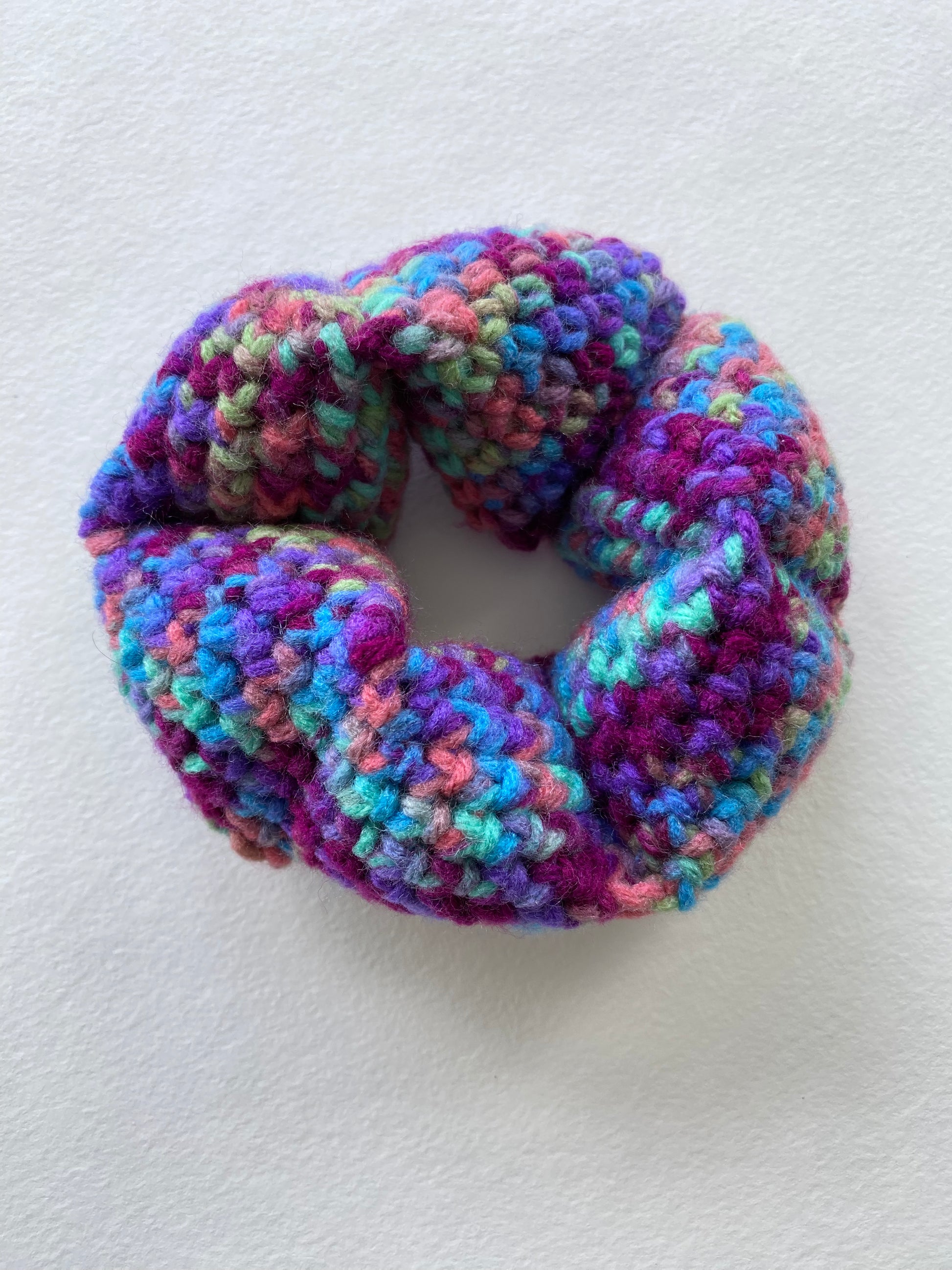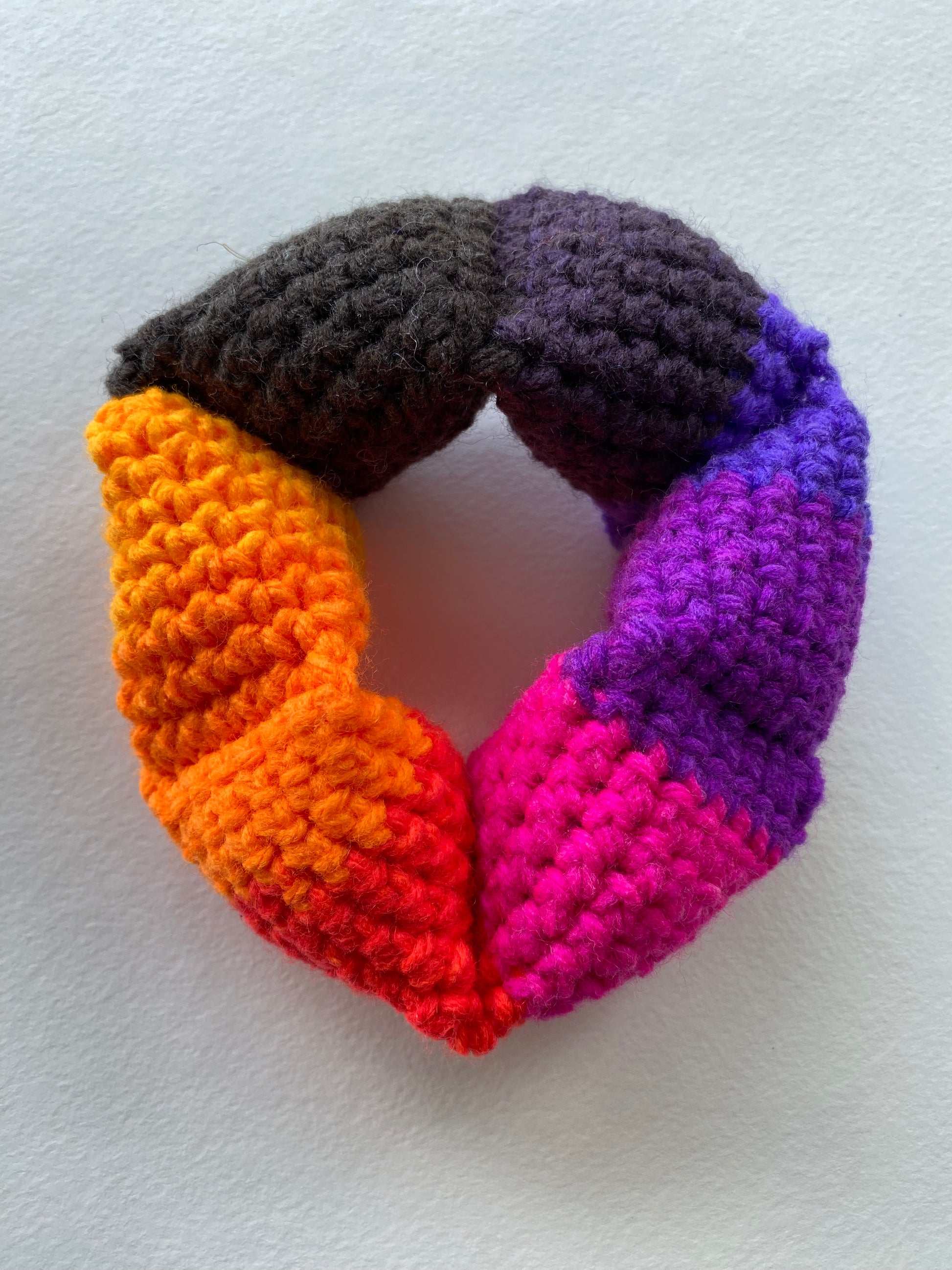 Crochet fidget that is a ring you can flip/twist endlessly! Crocheted by me from acrylic yarn, making it easy to wash. Measures approximately 4.5 inches (12 cm) across.