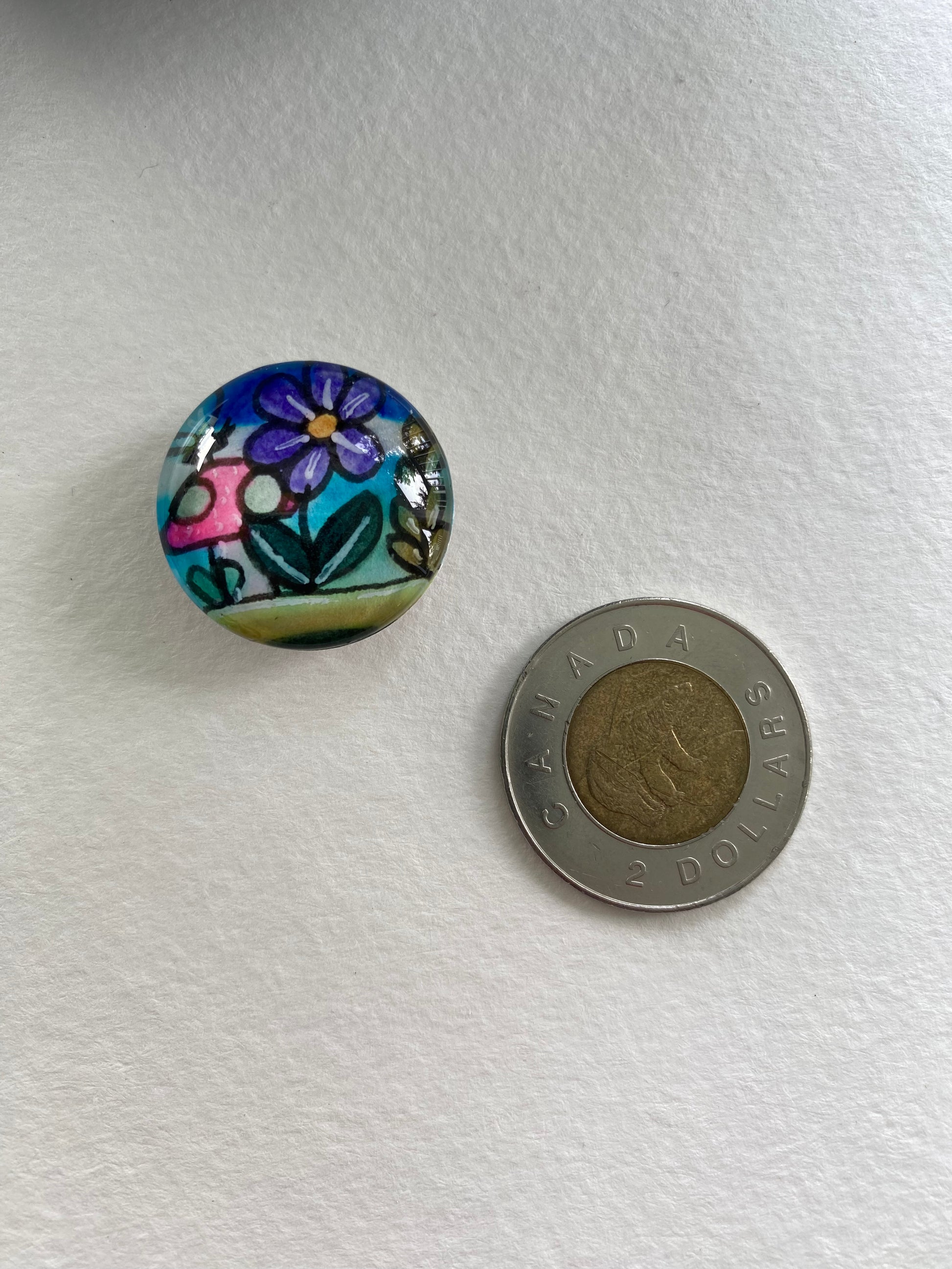 Created with glass cabochons and grippy magnets, these have ceramic magnets attached and measure 1 inches (2.5cm) across.